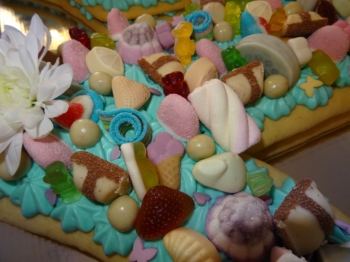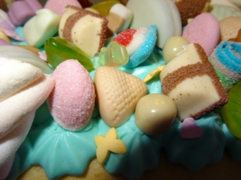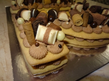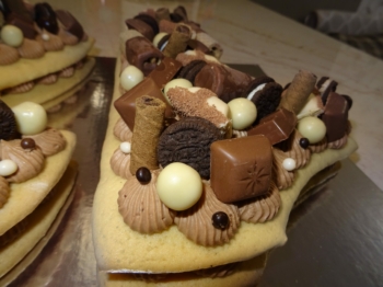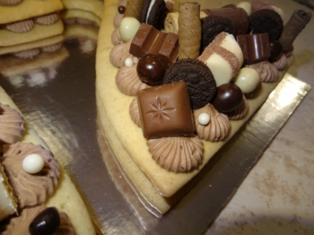 Торти с блатове като маслена бисквитка с шоколадов-чийз крем. Обсипани с лакомства